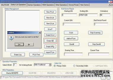 (12)单击"Defect List Operations"选项卡,单击"Empty GP"按钮清空原P表,专修程序将打开一个对话框询问是否继续,单击"Yes"按钮,如图10所示。