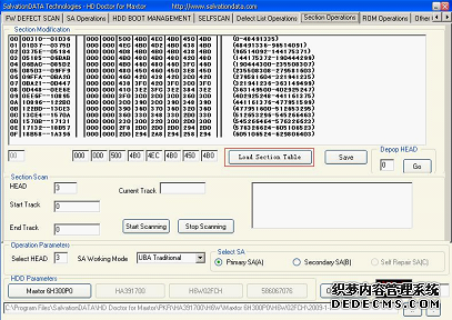 (6)单击"Section Operations"选项卡,再单击"Load Section Table"按钮读取区段列表,专修程序将自动装载硬盘的磁头分布和区段信息,如图4所示。