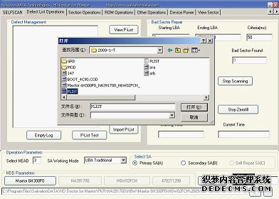 注意:一定要确认P表文件已经正确备份出来,因为执行砍头操作后必须重新导入P表文件,否则硬盘启动时依然会读取原缺陷表,但是其中有一部分在砍头时已经被屏蔽掉,如果读取会导致硬盘故障。而重新导入P表,程序会自动根据新的磁头分布修正P表,确保硬盘砍头后正常工作。